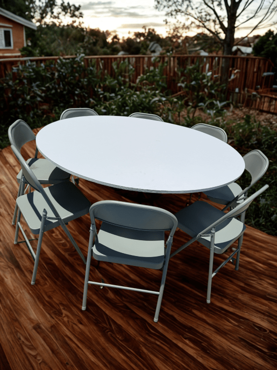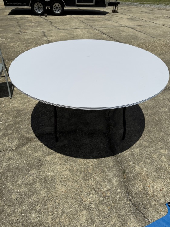A sturdy 5-foot round table that provides a roomy, social surface for dining, games, or display at your event. Its circular shape encourages conversation and makes seating arrangements easy—typically comfortable for 6 people. Compact enough for smaller spaces yet large enough to serve as a buffet, cake table, or centerpiece station. Clean, versatile, and simple to pair with linens and seating to match your event’s style. Perfect for weddings, parties, meetings, and backyard gatherings.